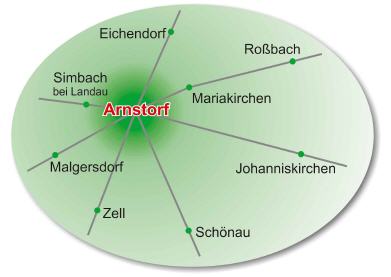 Unser Einzugsgebiet für die häusliche Betreuung